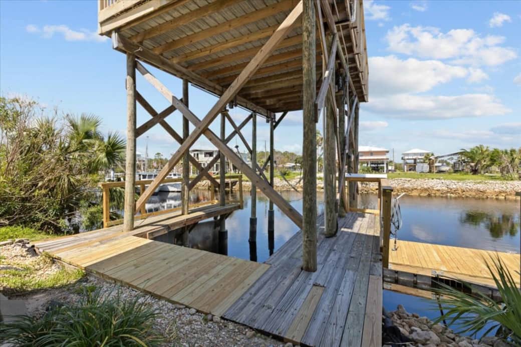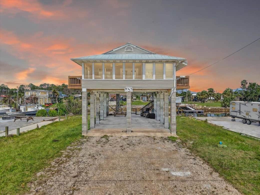 *PLEASE NOTE: We are still recovering from Helene so workers may be on & off property during stay!*Relax in this charming 2-bedroom, 1-bath home on a deep-water canal with private boat dock access. Enjoy stunning sunset views from the wraparound porch or spacious sun deck. Fully stocked kitchen, washer/dryer, towels, and an extra futon bed included for your comfort. Perfect for boating, fishing, and peaceful waterfront living. Ice machine provided.